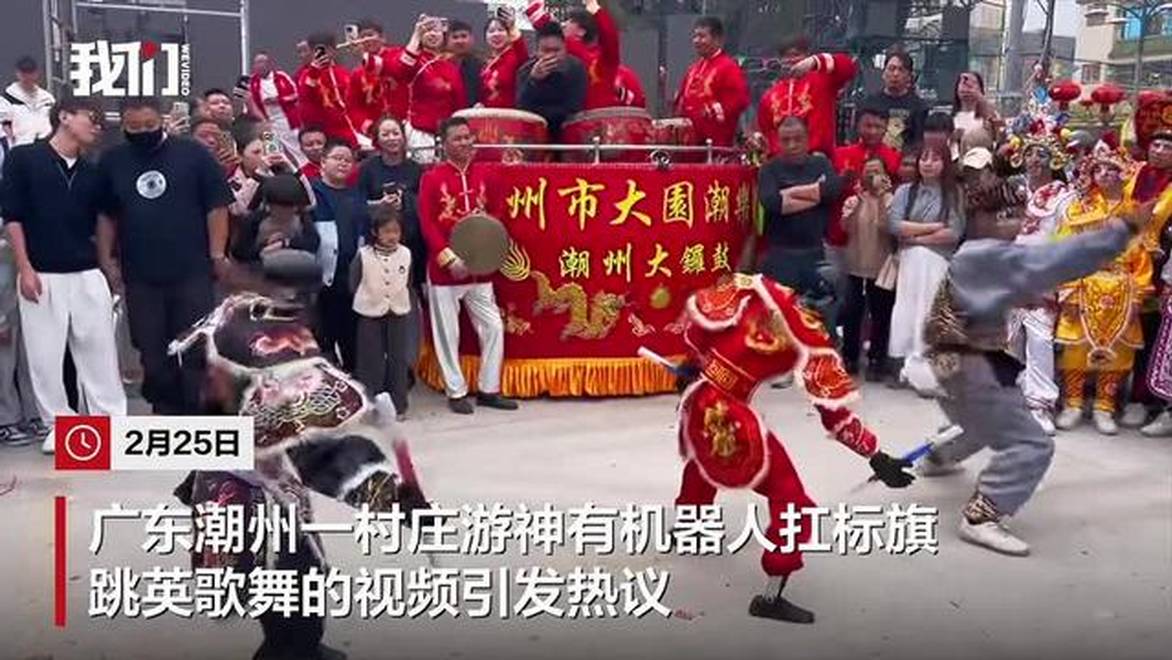 潮州一村庄游神活动现“显眼包”,机器人穿戏服跳英歌舞“凑热闹”