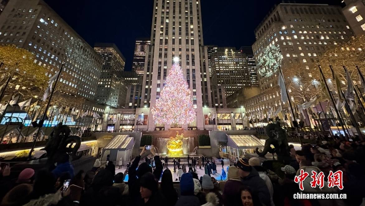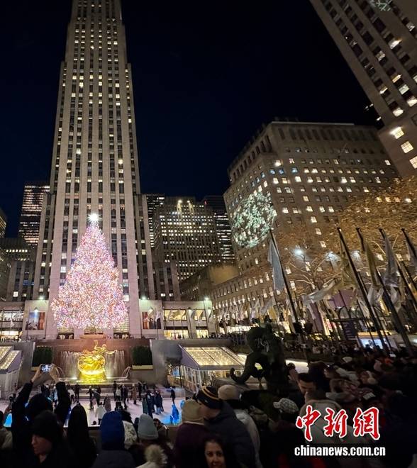 美国纽约市最大圣诞树点亮 人们争相观赏