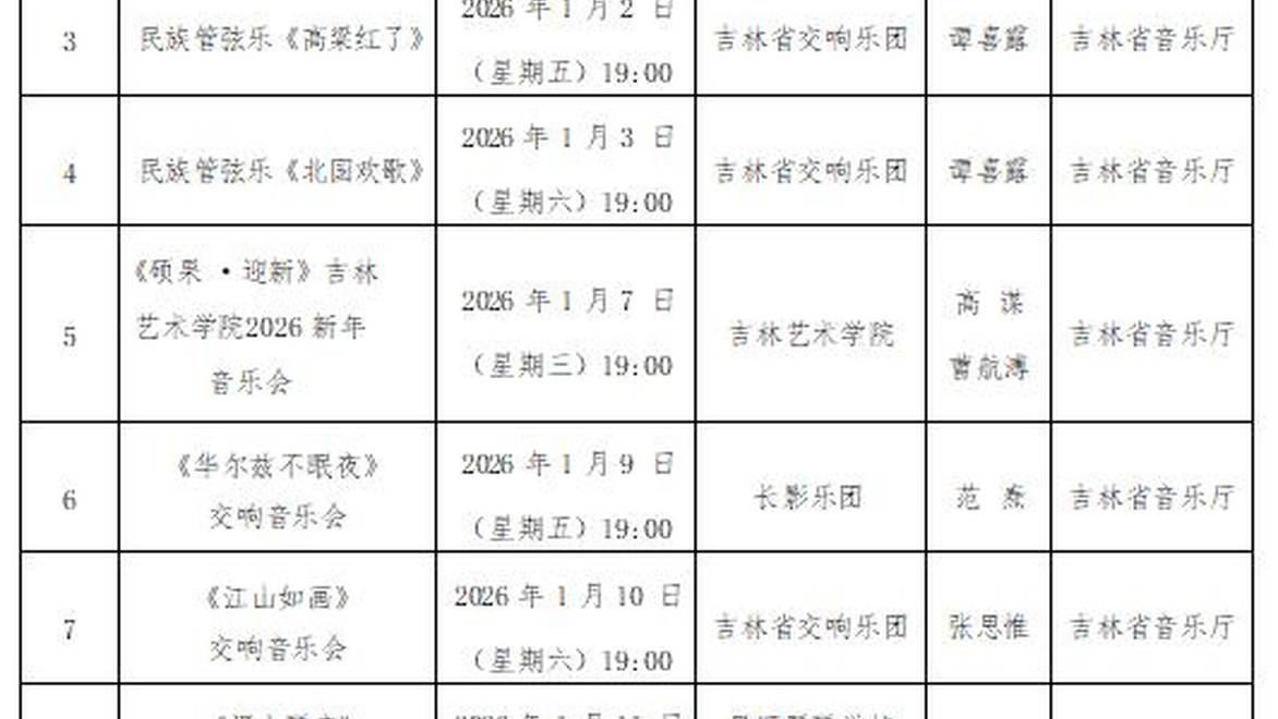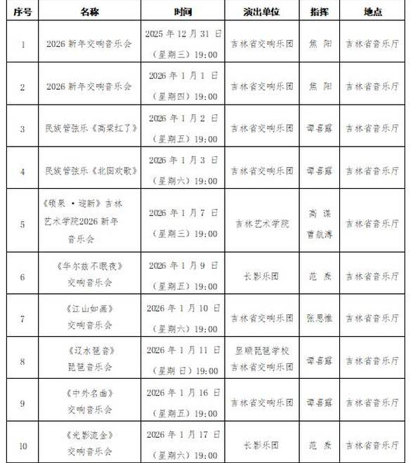 吉林省2026新年交响音乐会系列演出节目单来啦!