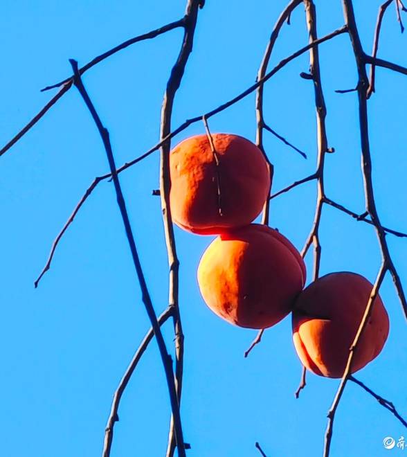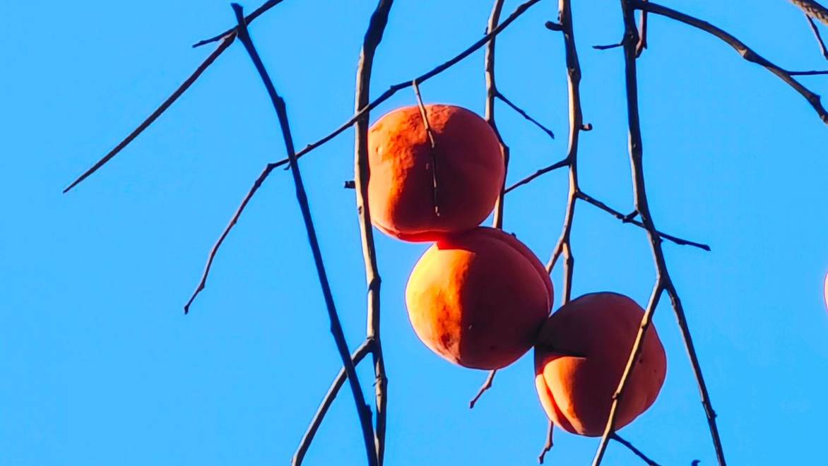 熟透的红柿子,在蓝蓝的天空映衬下富有诗意