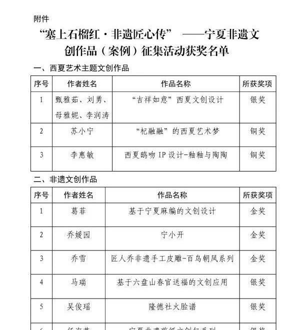 关于“塞上石榴红·非遗匠心传”——宁夏非遗文创作品(案例)征集活动获奖名单的通报