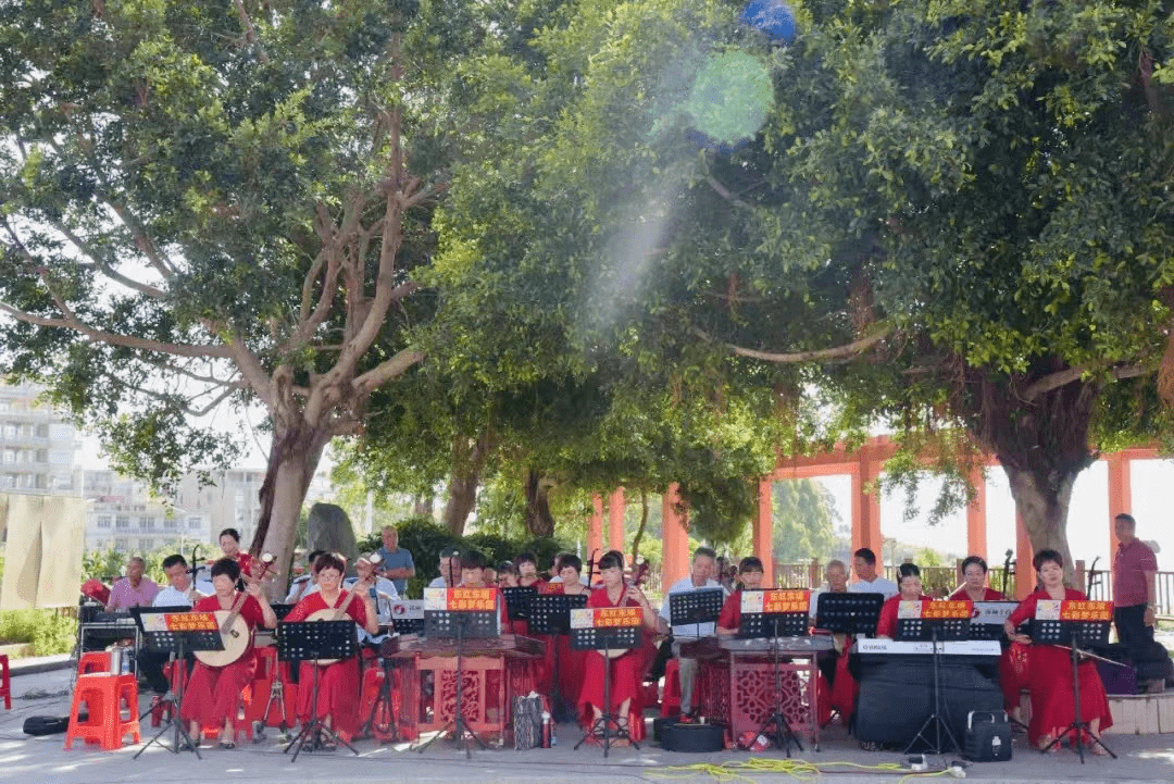 当天上午8时,在靖恭妈祖书院的榕树下,迎来了秀屿区由司鼓陈新煌领衔的30多人组成的十音八乐队。这是一场专为道德讲堂,开展妈祖精神系列讲座而暖场的精彩合奏。伴随着悠扬的旋律和动人的男女声演唱,大家都静下心来,欣赏和感悟《集贤宾》《妈祖颂》优美曲牌和动人唱词。秀屿区莆仙十音八乐非遗传承人翁苍荣表示,组建十音八乐队,一是传播、传承和保护非物质文化遗产;二是运用群众喜闻乐见的十音八乐宣传妈祖文化,歌颂妈祖精神。全体队员乐此不疲,我为此非常开心。