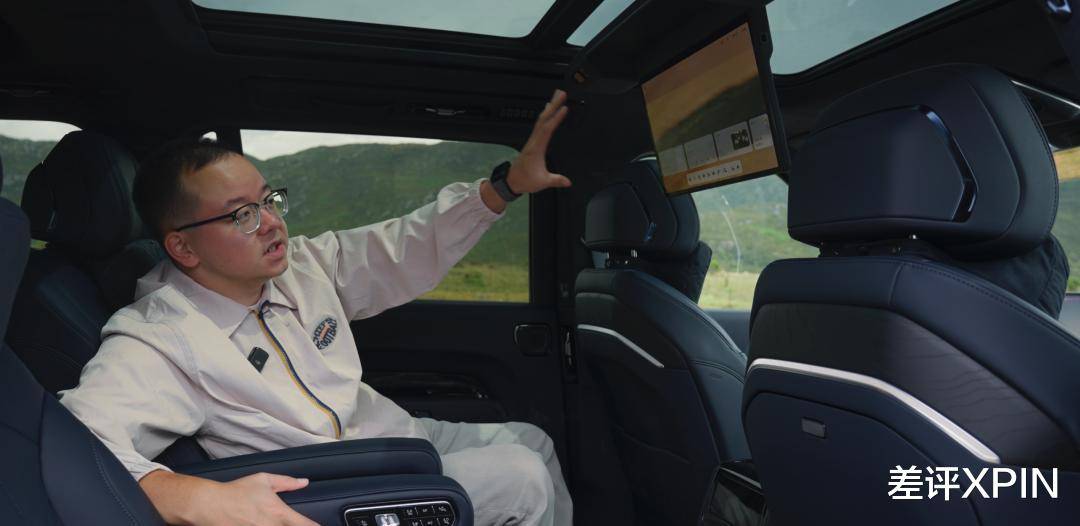 相较于二排的奢华,三排的设计似乎并未被视为 9X 的重点。中央通道的宽度仅为两拳左右,虽然提供了实体按键以便二排座椅一键前移,但整体操作便利性仍有提升空间。三排的空间与乘坐体验,基本与市面上主流的大六座车型相当,满足长途乘坐的需求不成问题。然而,考虑到 9X 的高端定位,其三排配置却相当丰富,加热和电动调节是基础,更令人惊喜的是,第三排配备了独立的双天窗和电动天幕。